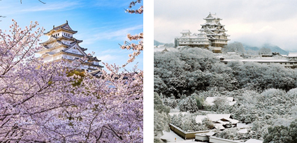 四季折々で表情を変える白鷺城(姫路城)は、平成5年12月、奈良の法隆寺とともに、日本で初の世界文化遺産となりました。